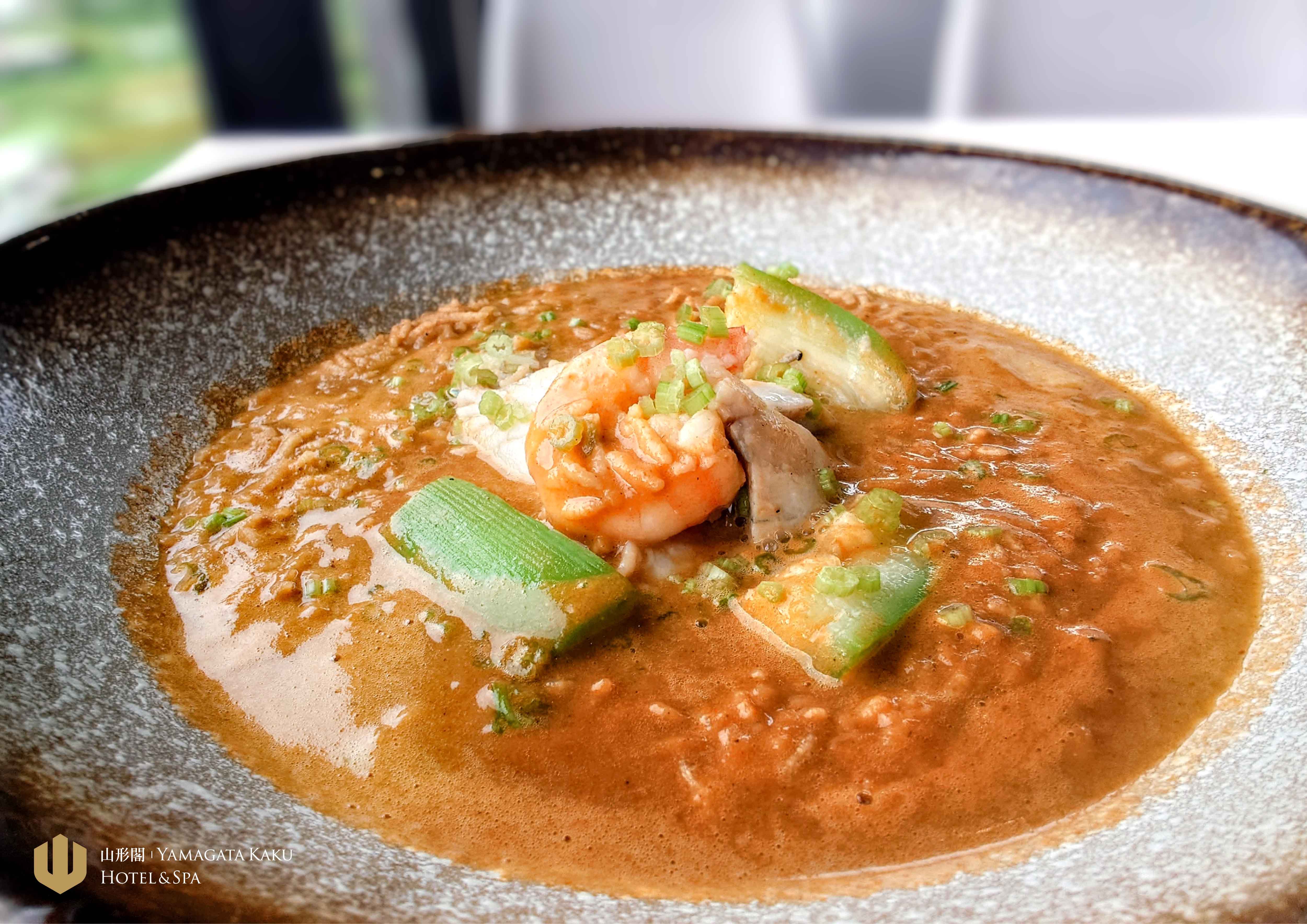 未來肉丸、豆腐、花椰米、茄子、小番茄、洋芋、椰奶綠咖哩、 香椿抓餅